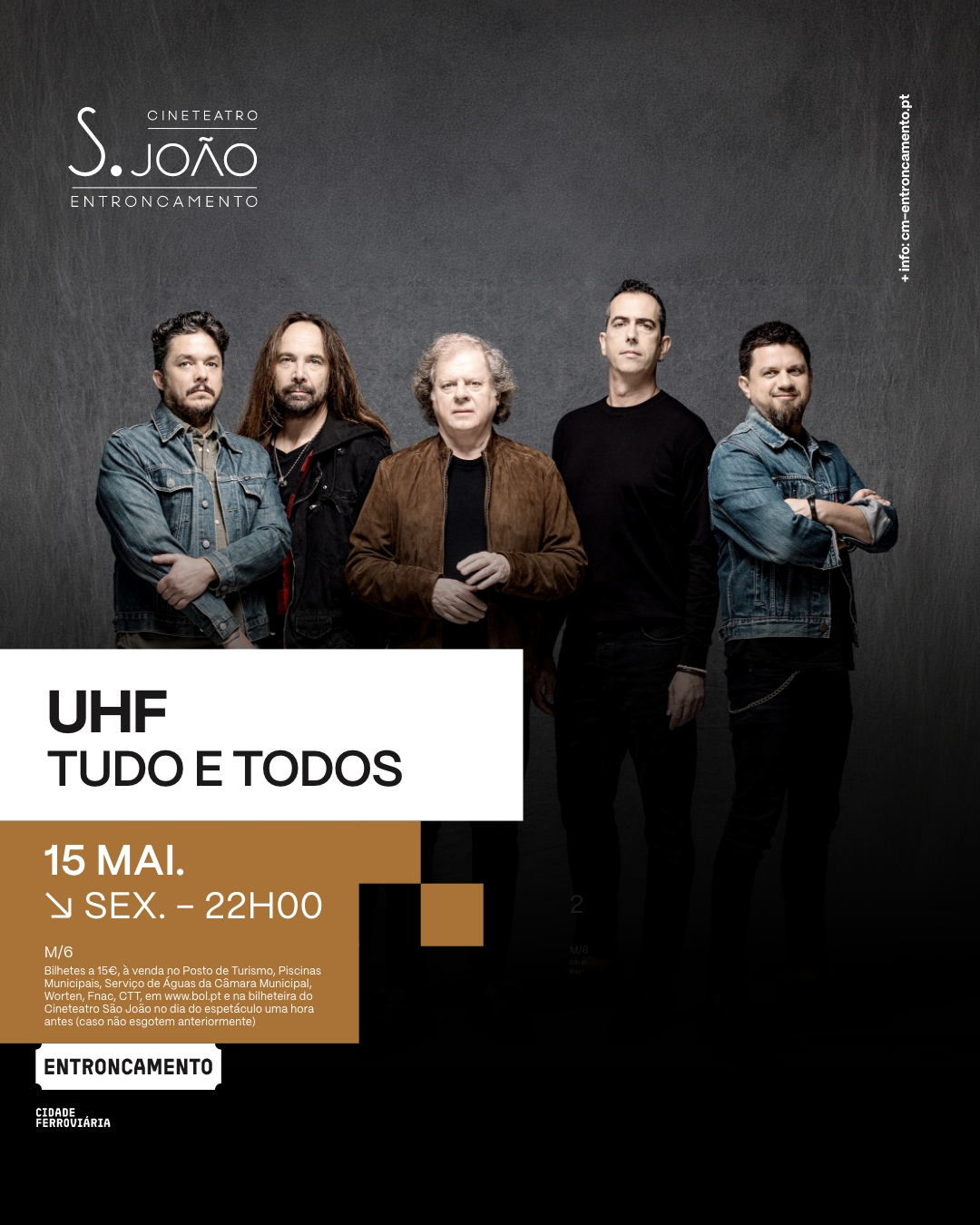 A digressão dos UHF de 2026, denominada “TUDO E TODOS”, sobe ao palco do Cineteatro S. João do Entroncamento, no próximo dia 15 de maio, sexta-feira, pelas 22h00.