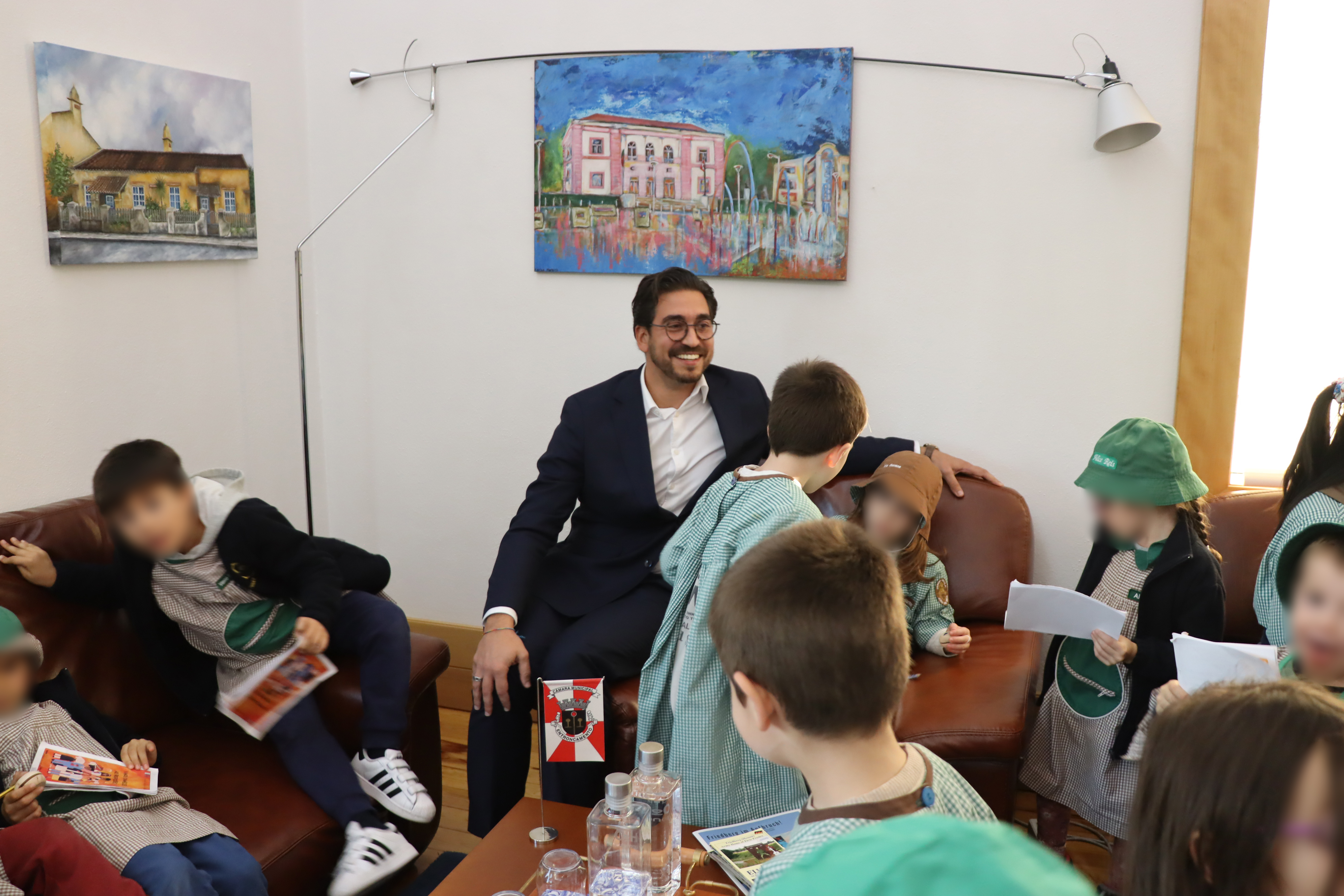 Os alunos foram recebidos pelo Presidente da Câmara Municipal, Nelson Cunha, pelo Vice-Presidente, Helder Gama e pela Vereadora a tempo inteiro, com o pelouro da Educação, Maria Figueira, tendo tido a oportunidade de conhecer os Paços do concelho e o gabinete do Presidente da Câmara Municipal do Entroncamento.