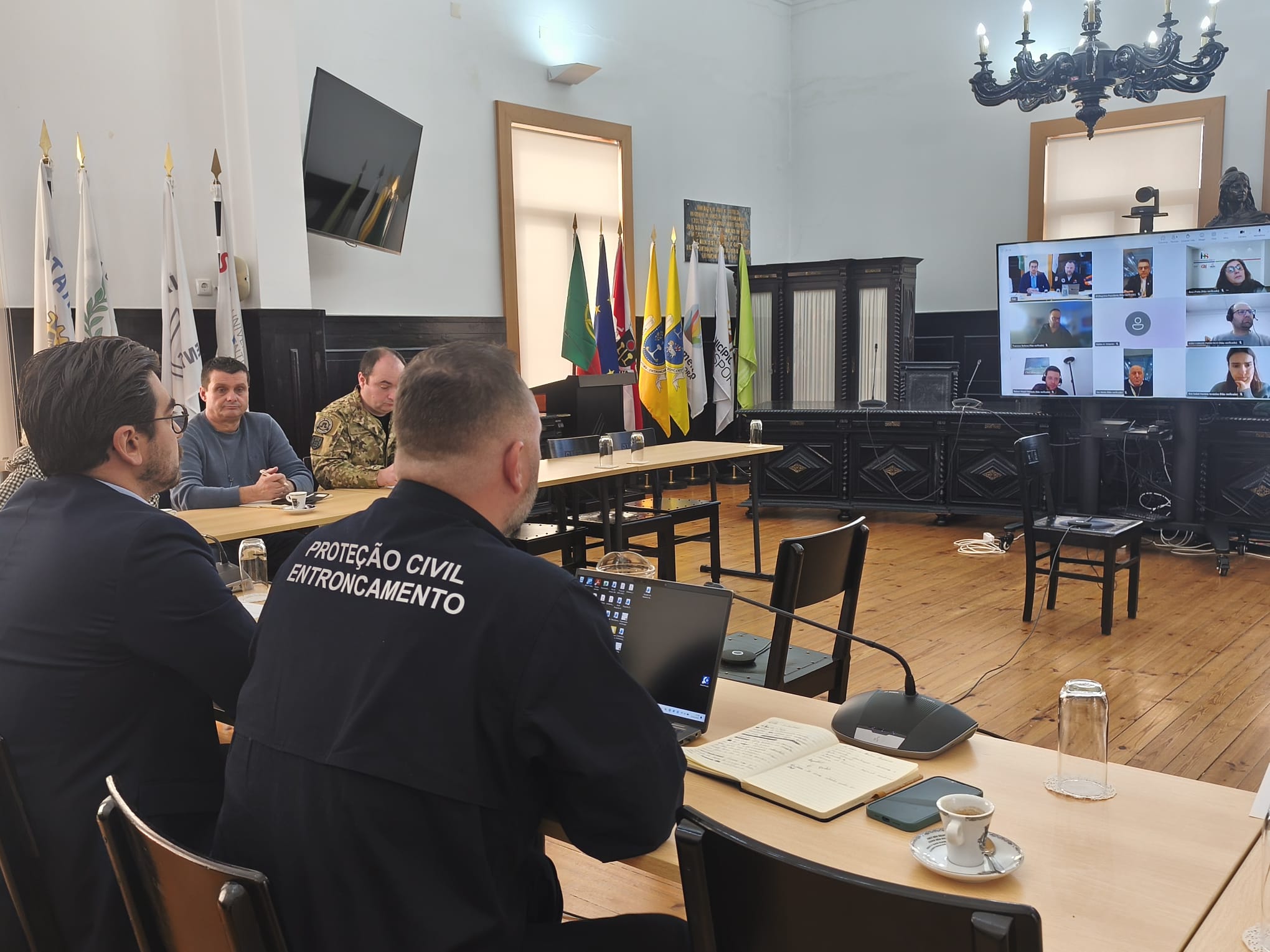 A Comissão Municipal de Proteção Civil é composta pelas seguintes entidades: Presidente da Câmara Municipal, Presidentes das Juntas de Freguesia, Serviço Municipal de Proteção Civil, Comandante dos Bombeiros Voluntários, Comandante da Esquadra da PSP, representantes do Regimento de Manutenção do Exército, da Unidade Saúde Pública ACES Médio Tejo, do Centro de Saúde , da Santa Casa da Misericórdia, do Instituto de Segurança Social, do Agrupamento de Escolas Cidade do Entroncamento, da Infraestruturas de Portugal – IP, da E-Redes e da Rádio Voz do Entroncamento. Estas entidades reforçaram durante a reunião a sua coordenação no âmbito do PME, sublinhando a importância do trabalho conjunto entre os diferentes agentes de proteção civil e estruturas municipais, com vista à salvaguarda de pessoas, bens e ambiente.