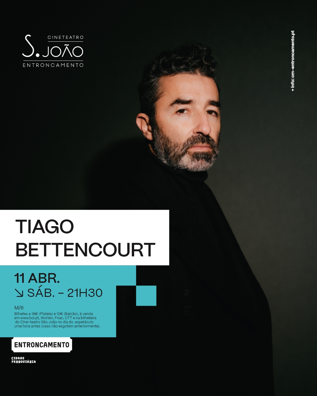 O palco do Cineteatro São João recebe o espetáculo de Tiago Bettencourt, no dia 11 de abril, sábado, pelas 21h30m.