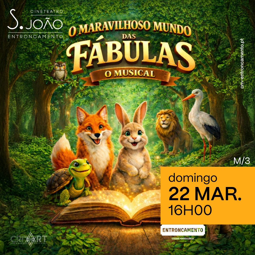 O Cineteatro São João recebe, no dia 22 de março, domingo, pelas 16h00, o Teatro Musical Infantil “O Maravilhoso Mundo das Fábulas”.