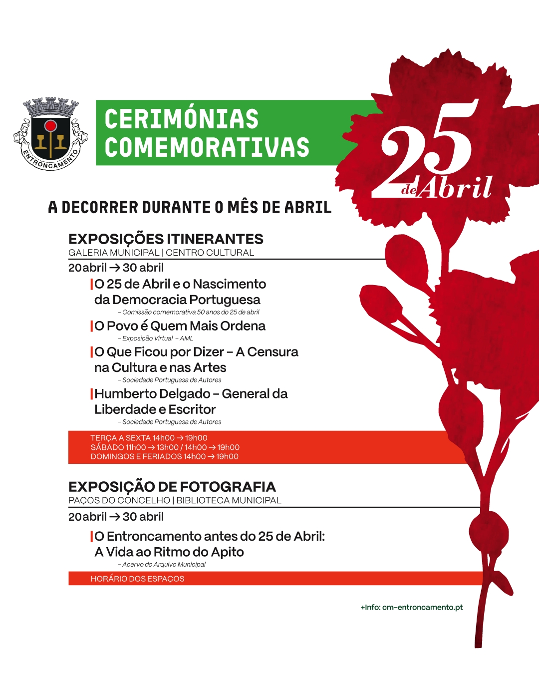 O Município do Entroncamento prepara-se para assinalar a data da Revolução de 25 de Abril de 1974 com um programa comemorativo diversificado, convidando toda a população a participar nas atividades agendadas.