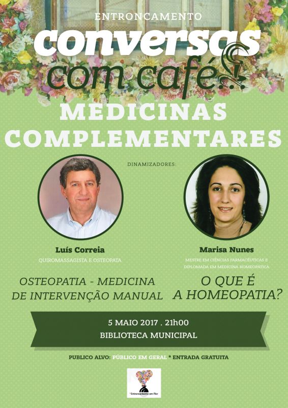 Decorre no próximo dia 5 de maio, sexta-feira, às 21h00, mais uma edição do ciclo de tertúlias temáticas “Conversas com Café”, desta vez terá como tema as Medicinas Complementares.