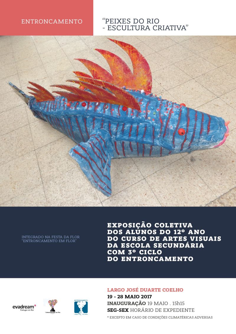 O Largo José Duarte Coelho recebe de 19 a 28 de maio, a exposição coletiva “Peixes do Rio – Escultura Criativa” da autoria dos alunos do 12º ano do Curso de Artes Visuais da Escola Secundária com 3º Ciclo do Entroncamento.